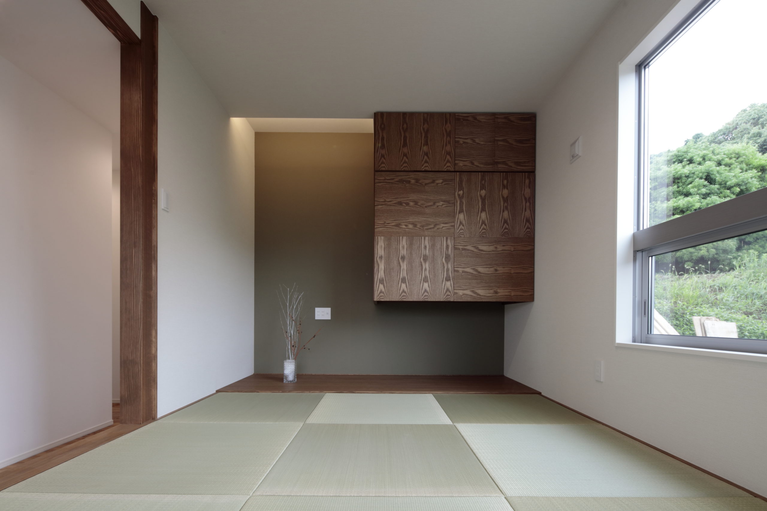 西日を遮る片流れのシャープな外観に、景色を切取る窓を配置。室内からも景色を楽しめるように配慮しました。