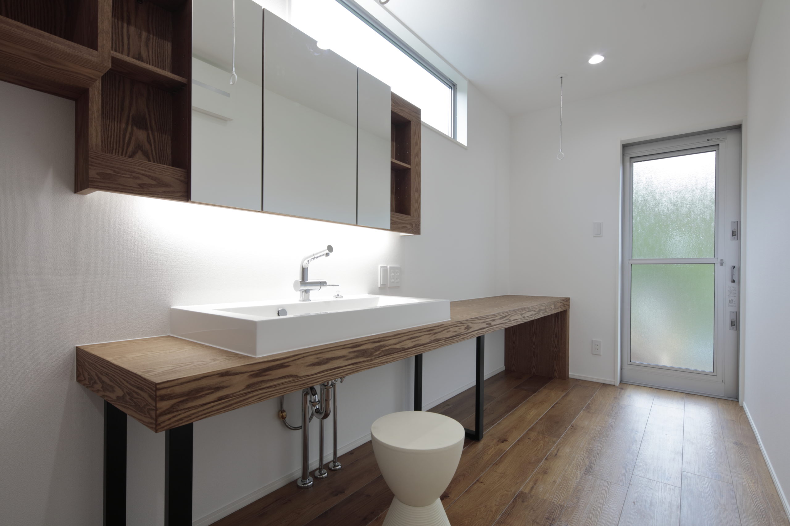 アウトドアがお好きなご家族のため、洗い場に直接行ける動線を作り、洗濯干し場を室内に確保。奥様の家事効率が良い間取りを提案しました。